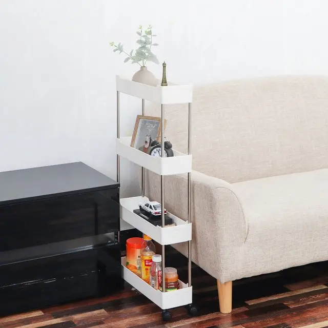 4 Tier Kitchen Bathroom Shelf Trolley Storage Rack Cart Sofa Fridge Side Organizer – White