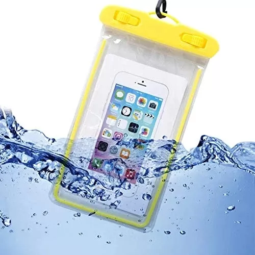 The Waterproof Phone Pouch shock absorbing transparent PVC bag protects phones and other devices from water snow, and other elements, while still maintaining all your phone’s touch screen functions.